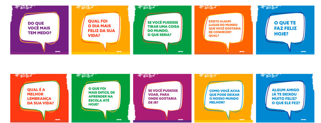 A base da campanha é o caderno ‘100 perguntas que vão dar o que falar’, lançado em 2016, que já tinha como proposta promover essa aproximação. Abaixo, algumas das questões disparadoras presentes no material: